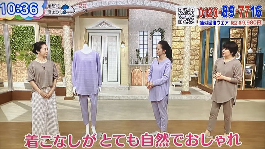 テレビ東京『なないろ日和!』ショッピングコーナーにて、「大人のおしゃれ手帖監修 疲労回復ウェア」のご紹介をしました。